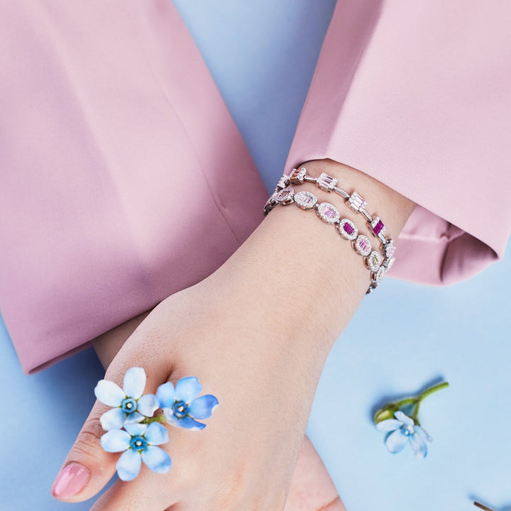 New Trending S925 Sterling Silver/Rhodium One Piece Jewelry Bracelet Chain For Women Luxury Zircon